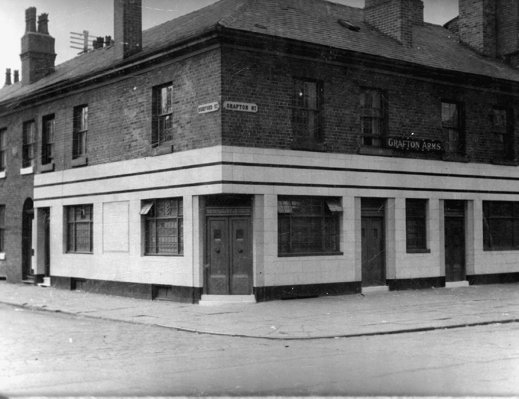 the Grafton Arms will be reached halfway along Grafton Street. In 1959 (photo here) it is defiantly a street corner boozer, but nowadays it looks almost like it is part of the University Hospitals. This new build (if 80's can be considered new!) Holts establishment does what it says on the tin (or at least the signage). Inside you find two rooms on offer, a vault and a lounge. Tastefully re-decorated, and with numerous unusual photos of central Manchester providing something to discuss while we wait for the part-timers to join us at this, the 8:30pm meeting point.