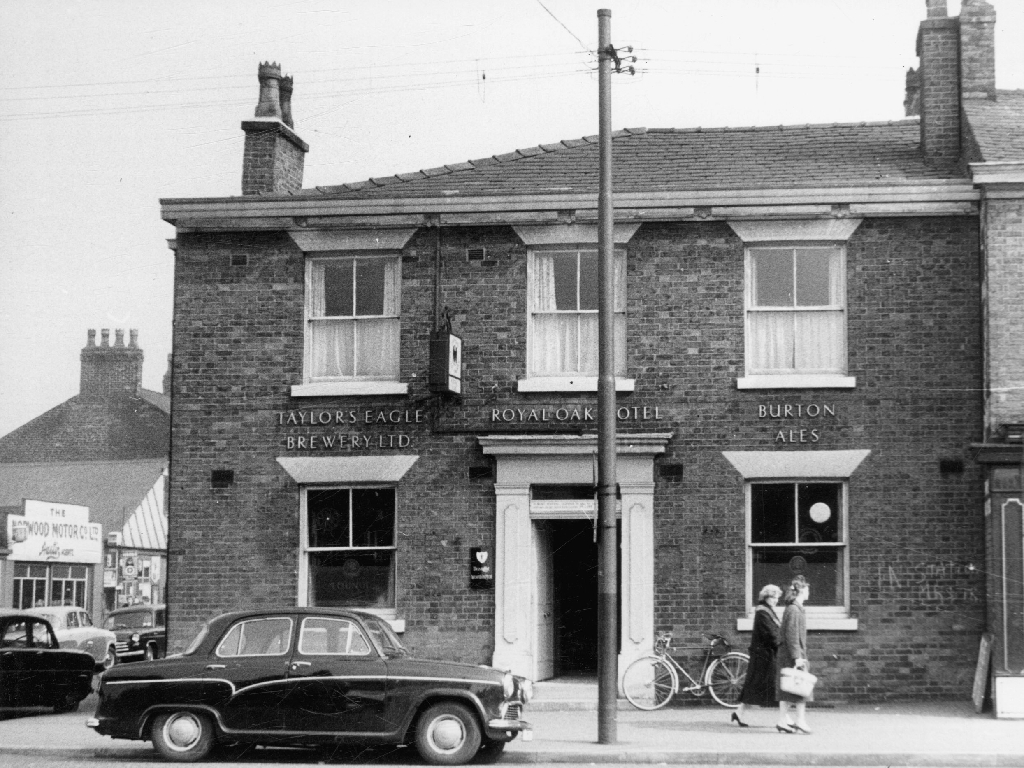 road and backtracking slightly, we can enter the Royal Oak. A Marston' house which takes advantage of the guest ales available within the group, four guest beers per month are served, as well as selling an excellent pint from the Banks/Marston range. Built around 1850, this multi-roomed pub has a large central horseshoe-shaped bar which displays an impressive collection of old porcelain spirit vats that thankfully were saved from a serious fire in the pub in the 1990s. WARNING - FOOD ALERT. The pub is famous for its award-winning cheese and pate lunches (served Mon-Fri) which many have tried to copy but none have been able to surpass for choice or value. Homemade pies and other dishes are also served at lunchtimes, whilst roasts make an appearance on Sundays.