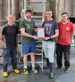 It was Sheffield’s year, because the bronze in the Beer of the Festival was won by another homebrewer from the city – Joe Lee, with Stratagem, a lovely session IPA, brewed at Marble. We haven’t yet been able to present the certificate for this, but Joe is pictured (second right) receiving his category winner’s certificate from Marble head brewer Joe Ince, along with Marble brewers Wyn Davies (left) and Carl Eccles (right).